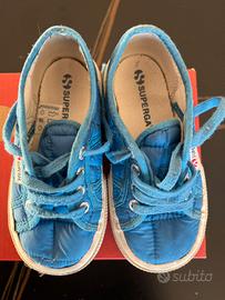 Vendo scarpe Superga originali da bambino n. 25, colore azzurro, modello classico con lacci.