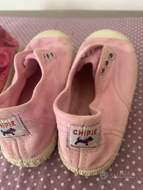 Le fucsia sono Natural World con lo strappo e la suoletta estraibile e vengono 5€, le rosa sono Chipie senza lacci, con elastico, e vengono 10€. Possono essere usate anche come pantofoline per l'asilo.