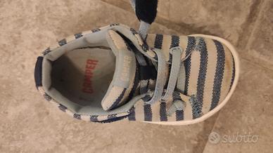 Vendo Scarpe tela Camper Peu blu/azzurro a righe per bambini. Numero 22 Segni di usura come visibili in foto.