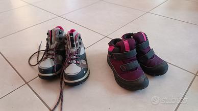 Scarpe Trekking Quechua nr. 29 bambina usate poco e tenute bene, in omaggio scarpe invernali decathlon da camminata nr. 29 USATE ma robuste.