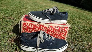 Scarpe Vans con confezione originale in camoscio blu nr. 35. Usate ma in buonissimo stato come vedete dalle foto incluse le suole. Preferibile consegna a mano. In caso di spedizione costi di spedizione ed imballaggio da quantificare.