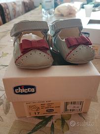 scarpette neonata chicco grigio lucido con fiocco bordo numero 17
