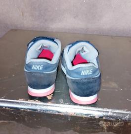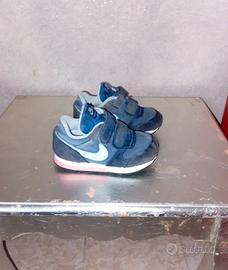 Scarpette Nike per bambini in colore blu. -N:25 - Chiusura con velcro. - Dettagli in grigio e rosa. - Logo Nike sul lato.
