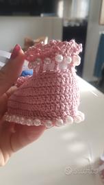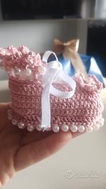 scarpette realizzate a mano all'uncinetto in filo di scozia..misura 0-3 mesi