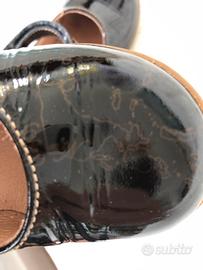 In pelle lucida marrone con l'inconfondibile stampa a carta geografica