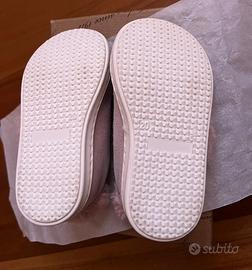 Vendo scarpine artigianali scamosciate rosa da bambina, misura 20, indossate due volte, con scatola originale.