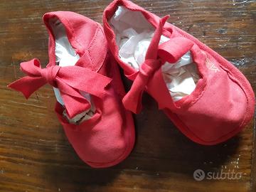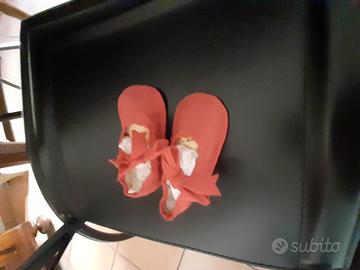 Scarpine tessuto rosso marca "Le Zanottine" anni 70/80 mai usate, con incarto ancora originale.