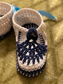 Scarpine fatte a mano all'uncinetto da regalare per l nascita di un bambino.