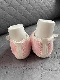Scarpette Aletta da neonata di colore rosa con fiocco bianco. Taglia 18, nuove