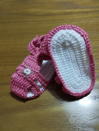 Vendo scarpine neonata da 0 a 3 mesi realizzate a mano all'uncinetto 100% cotone, nuove mai indossate. Colore rosa e bianco