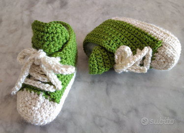 Scarpine neonato taglia 6 mesi in cotone fatte a mano lavoraz uncinetto bicolore, si spedisce +spese corriere