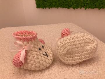Scarpine pecorella lavorazione all'uncinetto