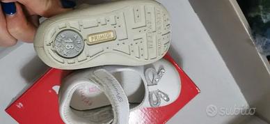 Vendo scarpine da bambina Primigi, numero 18, colore bianco con fiocchetto glitterato.