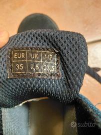 scarponcini da escursionismo per bambini taglia 35 colore blu scuro e nero, ganci in ferro unico difetto segni di usura sulle punte come si vede in foto
