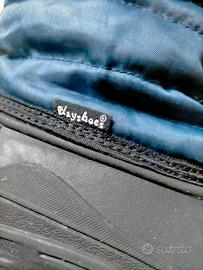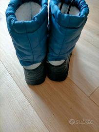 Scarponcini da neve per bambina/o. Colore blu, in tessuto e gomma colore scuro esterno. Interno pelo bianco. Taglia 28/29 come foto. Marca playshoes. Usati poco e ancora in buone condizioni. No cartellino ne confezione originale