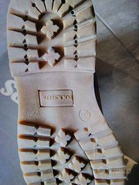 Gomma carrarmato beige. Lacci cordoncino beige marrone.