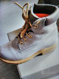 Scarponcini grigi in nabuk, con inserti in pelle marrone.