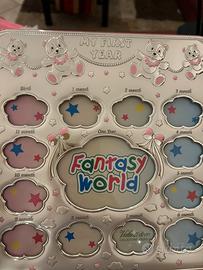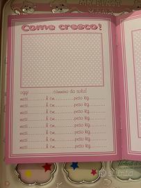 Scarola idea regalo liena Valenti con cerrifocaro dettagli cornice piu piccola (quella con elefante) in argernto, cornice piu grande “My frist year” in argento con foro per ogni mese, entrambe le cornici sono in legno e argento e in piu c’e un piccolo Diario della mia bambina in carta con dettaglio in argento