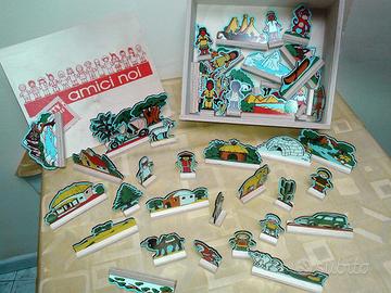 La scatola comprende ben 49 formine fra bambini e bambine di tutte le razze del mondo, paesaggi del mondo, tipi di abitazioni nel mondo, diversi alberi, diversi animaletti e diversi mezzi di trasporto!