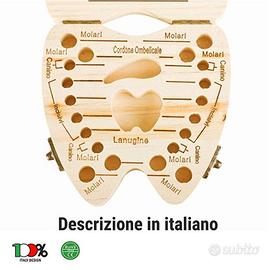 SCATOLA PORTA DENTINI da LATTE Porta Dentini Da Latte In Legno Anallergico Nuova Generazione by Dikiombrella Box Salva Ricordi di Infanzia Versione Italiana Per Bambino e Bambina