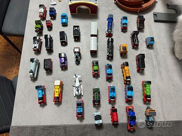 Scatola mista con veicoli in metallo e piste trenino Thomas