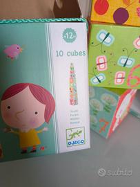 10 scatole in cartone impilabili (altezza totale 86 cm) ciascuna con 5 facce disegnate con numeri, animali.