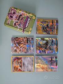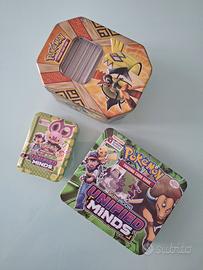 3 scatole carte da gioco Pokemon di diverse dimensioni e prezzi così composte: 1) scatolina da 50 carte (contiene 10 GX tra cui Tapu Koko, Dragonite e Hawlucha base) € 10 2) scatola media da 150 carte (contiene 25 GX tra cui Ho-Oh, Tauros, Lycanroc, Marshadow e Wishiwashi) € 25 3) scatola grande da 266 carte (contiene 44 GX/EX tra cui Charizard, Lunala, Solgaleo, Raichu e Pikachu base, Fletchinder base + 9 carte giapponesi) € 44 Le carte sono tutte in lingua inglese e sono visionabili in loco.
