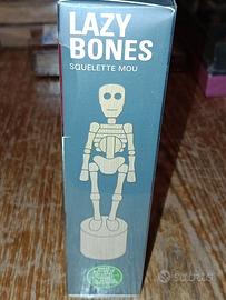 Simpatico Scheletrino in legno! Premendo il pulsante situato sotto la base lo scheletrino si piega simpaticamente e si rialza al rilascio.