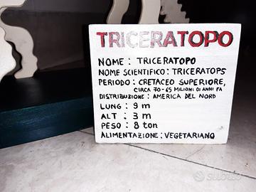 Scheletro Triceratopo fatto in legno tutto a mano, si può smontare tutto per metterlo via, misure Lung. 56 - Alt. 28 - Larg. 18, si può mettere in camera dei bambini o anche per collezionisti.