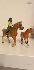 Bellissimo set di giocattoli Schleich Horse Club, composto da 4 pezzi, 2 cavallerizza + 2 cavallo e 2 puledro. I personaggi sono in perfette condizioni.