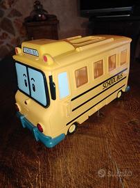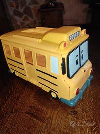 Vendo "SCHOOL BUS" ROBOCAR POLI. Lo Scuola Bus può essere usato sia come pratico porta oggetti infatti può contenere fino a 14 automobiline/personaggi (non inclusi) sia come vero e proprio pulmino della scuola in quanto ha ruote libere . Dimensioni prodotto: 32 x 15 x 20 cm. In ottimo stato e perfettamente funzionante vendo a € 15,00.