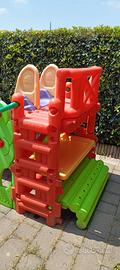 Scivolo, parete scalabile e nel retro panchina con tavolino per disegnare o giocare... Dai 3 anni fino ai 7 .