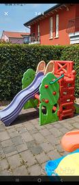 scivolo, parete scalabile e nel retro panchina con tavolino per disegnare o giocare... dai 3 anni fino ai 7 di ora mia figlia sempre usato.