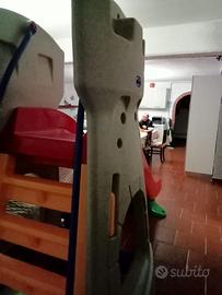 Grande scivolo a forma di castello, con accesso tramite la scala della torre.