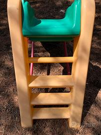 Vendo scivolo marca Chicco, bellissimo gioco per bambini. Struttura in plastica pieghevole, 5 gradini, colore giallo, verde e rosso buone condizioni, leggermente scolorito per il sole. Adatto sia per uso interno che per esterno.