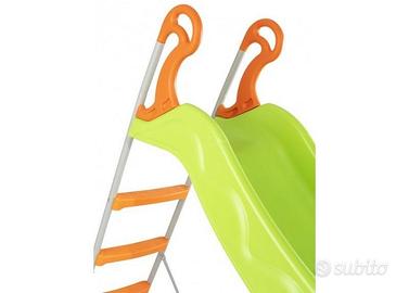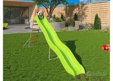 Scivolo COCONUT in plastica colorata da 332 cm di lunghezza, con struttura portante e rinforzo centrale in metallo verniciato e zincato.