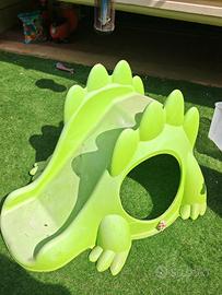 Vendo simpatico scivolo per bambini a forma di drago verde, perfetto per gioco all'aperto o in casa. Questo scivolo, realizzato in plastica resistente. Lo scivolo è in buone condizioni generali e ancora perfettamente funzionale e sicuro per il gioco dei bambini.