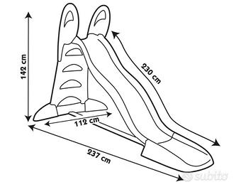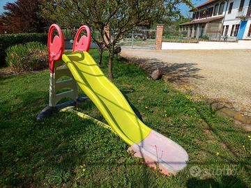 Vendo per inutilizzo bellissimo scivolo Smoby XL a doppia onda. Dotato di attacco per l'acqua per tubo da giardino si trasforma in uno scivolo ad acqua. Usato pochissimo, in ottime condizioni, solo la parte finale rossa dello scivolo scolorita per il sole. Adatto a bambini sopra i 3 anni. Smontabile per il trasporto. Ritiro a mano. Dimensioni 237 x 113 x 142 cm