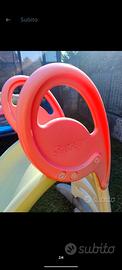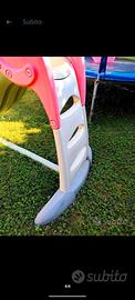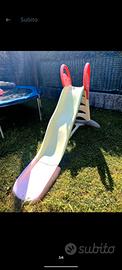Discesa 2,30 M, con Doppia Onda. Con la sua altezza di 1m42 e la sua scivolata a doppia onda di 2m30, i più piccoli potranno giocare per ore con questo gioco all'aperto. Sicurezza: dotato di gradini antiscivolo, maniglie ergonomiche e una base larga che ne garantisce la stabilità Effetto Water Fun: è sufficiente collegare un tubo da giardino (non incluso) sotto allo scivolo per creare una divertente cascata di acqua Trattato anti-UV. Adatto a bambini a partire dai 3 anni di età, MarchioSmoby Dimensioni del prodotto2,37L x 1,12l x 1,42H metri Peso articolo: 14 Chilogrammi Usato ma perfetto.