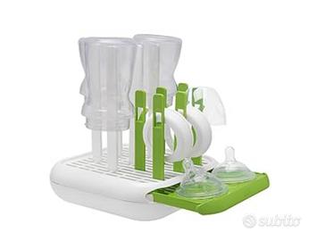 Il suo vassoio interno si adatta perfettamente in tutti gli spazi della cucina, le aste extra e di differenti misure supportano fino a 4 biberon. Spazio modulabile per spugna, scovolino e piccoli oggetti, anche da chiuso. Superficie drenante per l'acqua, griglia che evita all'acqua di stagnare sulla superficie. Facile sistema per svuotare l'acqua, con invito di scolo e maniglia posteriore.