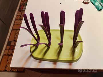 Scolabiberon per scolare ed asciugare biberon, tettarelle, succhietti, accessori per allattamento, stoviglie. Può contenere fino a 8 biberon ed accessori. Le vaschette hanno bordi rialzati per raccogliere l’acqua in eccesso. Chiuso misura solo 33 x 21 x 2,5 cm.