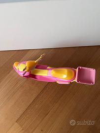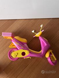 scooter vespa Barbie rosa e gialla, con bauletto.