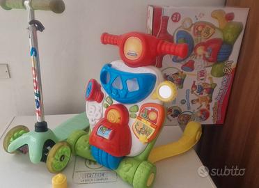 Stock 1. Composto da un monopattino a tre ruote e Valentino lo scuterino della Clementoni , parlante e musicale che interagisce col bambino. ( pagato da Amazon 45 euro). Oggetti praticamente nuovi.