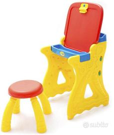 Il Crayola Play 'n Fold Art Studio è una robusta scrivania multiuso, munita di sgabello a 4 piedi, che si trasforma in un cavalletto con un leggio munito di pinza per reggere i fogli. Munito di vani contenitori per materiale da disegno e piano a ribalta. Seduta stabile e comoda per il bambino. Indicato per bambini fino a 6 anni.