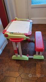 Scrivania per bambini con seduta incorporata, da un lato lavagna magnetica con lettere e numeri compresi nel prezzo, dall'altro lavagna in ardesia per scrivere con i gessetti. Molto resistente