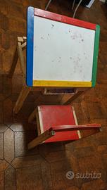 Scrivania per bambini con sedia annessa , la scrivania è costituita da una lavagna bianca dove si può scrivere con i pennarelli .