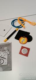 Gioco di magia Focus Junior Scuola di Magia. Include 3 trucchi: poker di re, anelli magici e corda. Perfetto per aspiranti maghi! - Gioco usato ma ancora in buone condizioni. Gli elastici per il gioco della moneta vanno sostituiti. - Include guida per imparare i trucchi. - Adatto a bambini dai 6 anni in su.