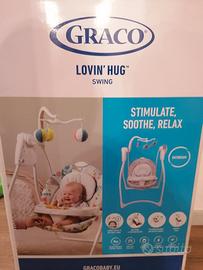 Graco - Lovin' Hug Sdraietta altalena, dalla nascita a circa 6 mesi (9 kg), 6 velocità di oscillazione, reclinabile, 10 melodie e suoni della natura.
