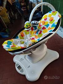 Offre diversi movimenti (come "viaggio in auto", "canguro", "altalena") e velocità, oltre a suoni rilassanti.