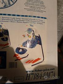 Culla Acquario luci e suoni, 6 velocità, 8 melodie, 3 suoni della natura, 2 modalità di oscillazione: culla o altalena, 2 posizioni del seggiolino: dritto o inclinato. imbottitura lavabile in lavatrice. richiede 4 pile D. limite di peso del bambino: 9 kg da 0-9 mesi
